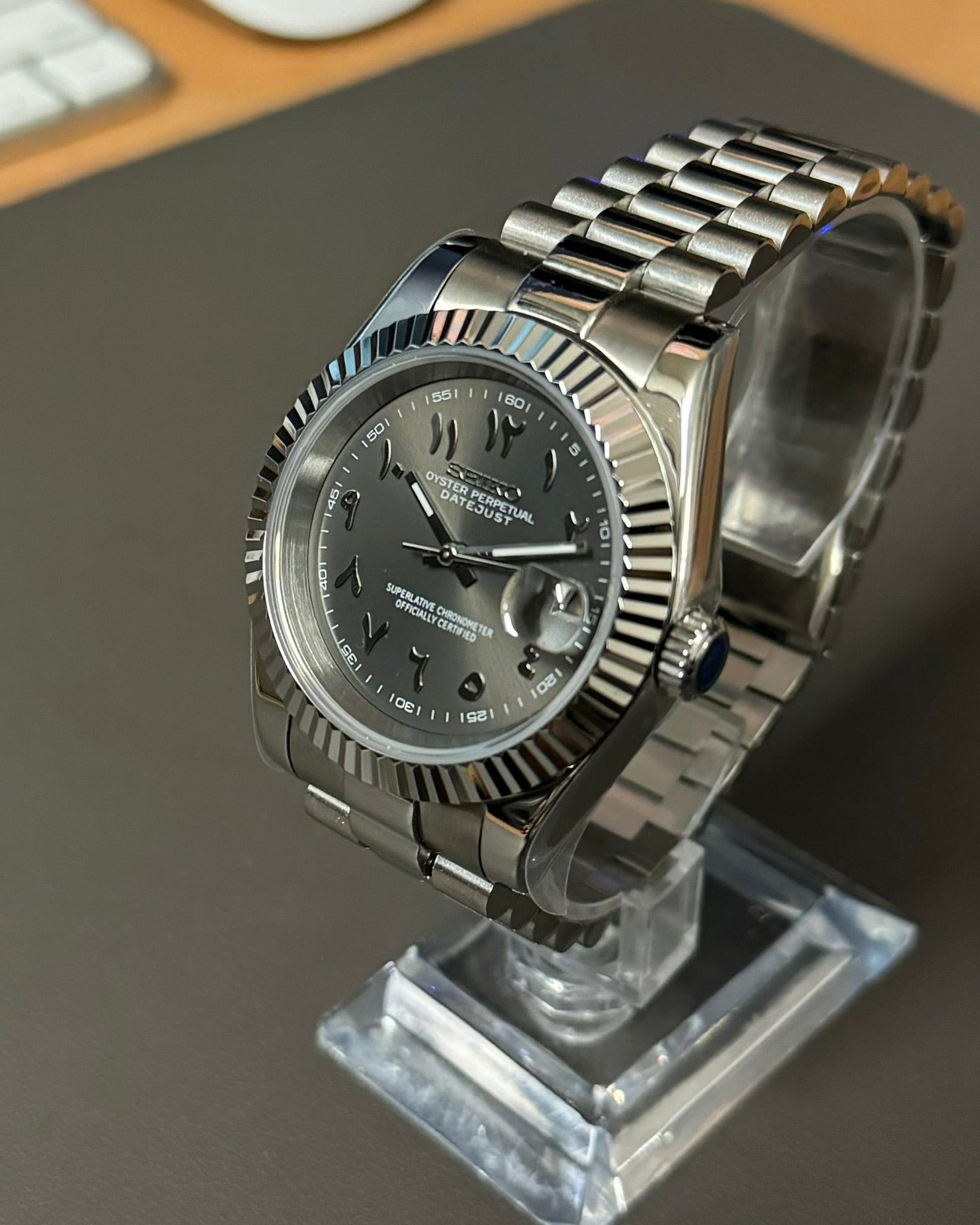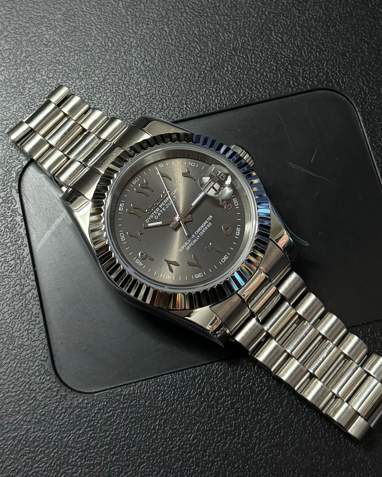 DateJust: Stainless Steel Grey Dial Arabic Markers w/ Presidential Bracelet