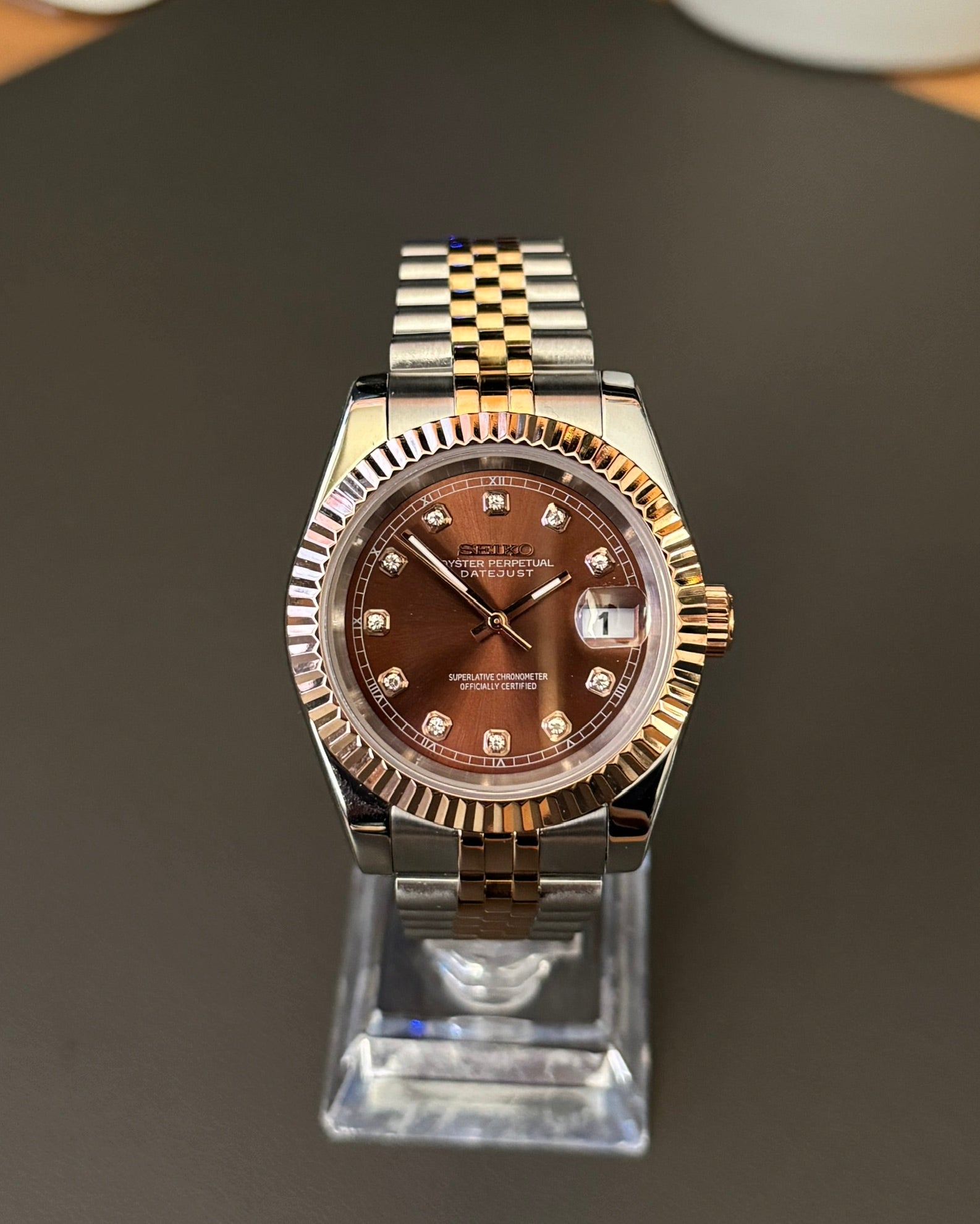 -Stunning Chocolate Dial with Gem Markers