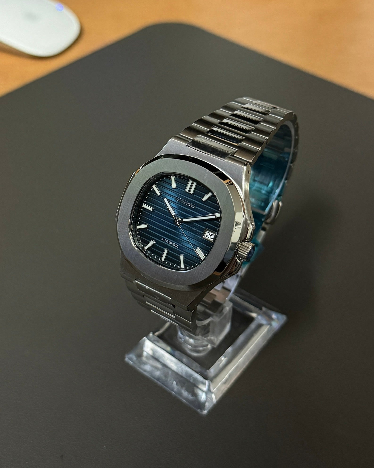 - NH35 movement w/ quickset date, seconds hacking, 41+ hour power reserve