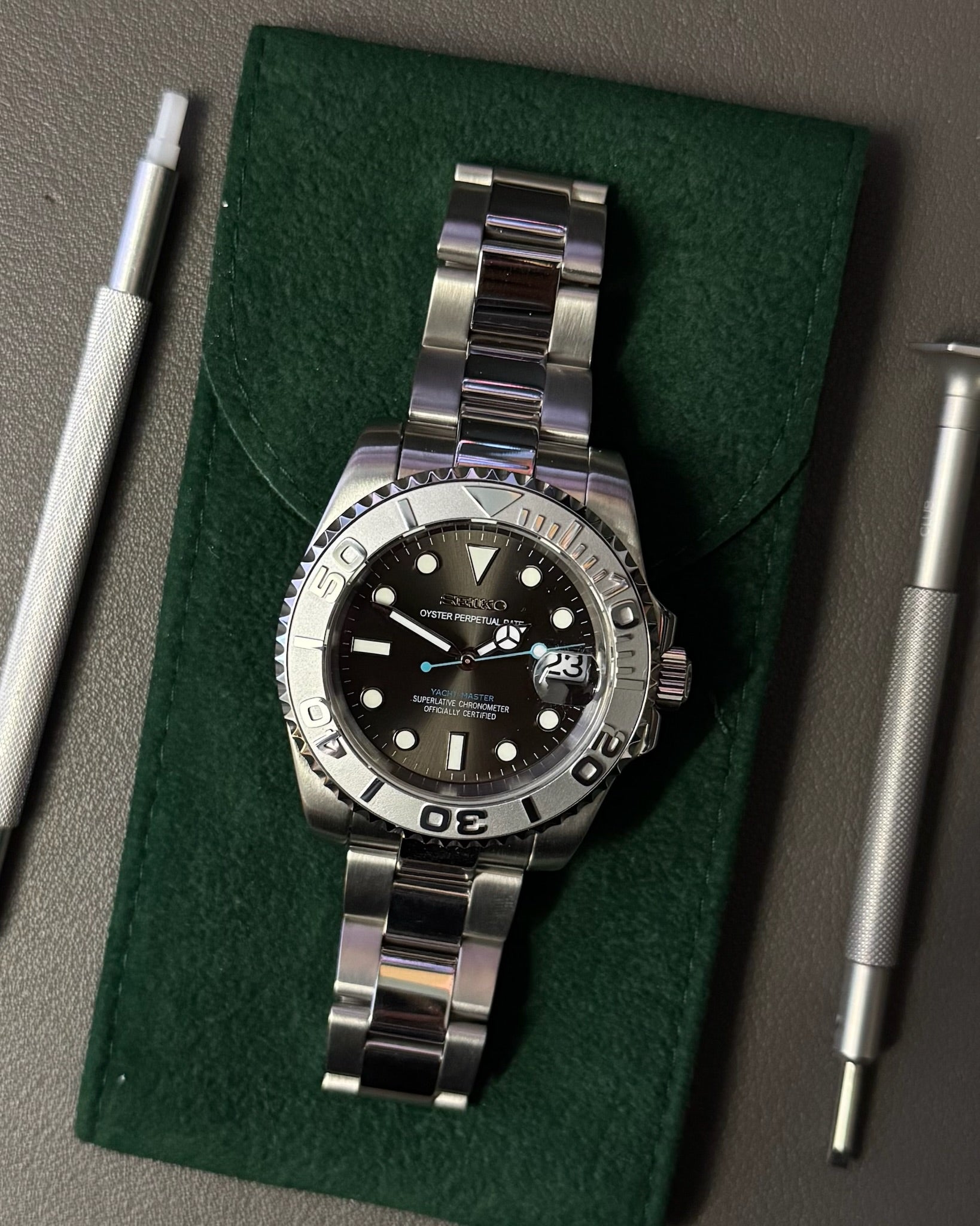 - NH35 movement w/ quickset date, seconds hacking, 41+ hour power reserve